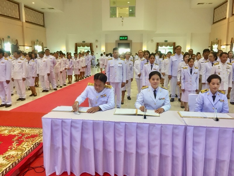 พิธีถวายสัตย์ปฏิญาณเป็นข้าราชการที่ดีและพลังของแผ่นดิน ณ หอประชุมจังหวัดบุรีรัมย์ ศาลากลางจังหวัดบุรีรัมย์