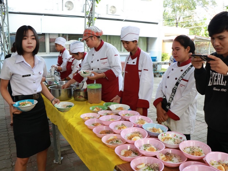 วิทยาลัยเทคนิคบุรีรัมย์ ดำเนินโครงการโรงทานกล้วย กล้วย ครั้งที่ 213 ปีที่ 7 ต่อเนื่อง วันศุกร์ ที่ 7 ธันวาคม 2561 ณ ลานขจีวรรณ เมนู ก๋วยเตี๋ยวหมู เกี๊ยวทอด