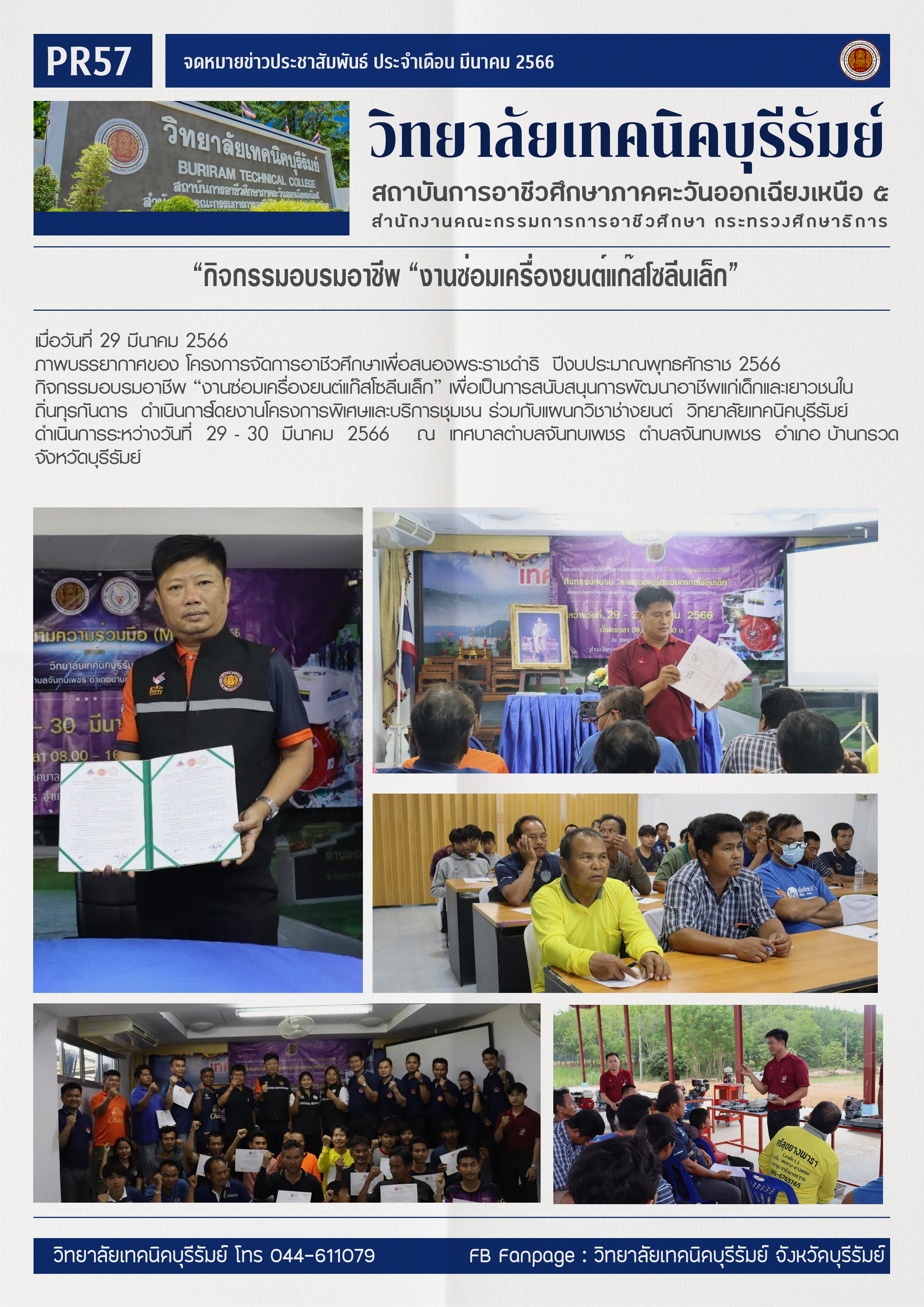 PR57 กิจกรรมอบรมอาชีพ “งานซ่อมเครื่องยนต์แก๊สโซลีนเล็ก” ...
