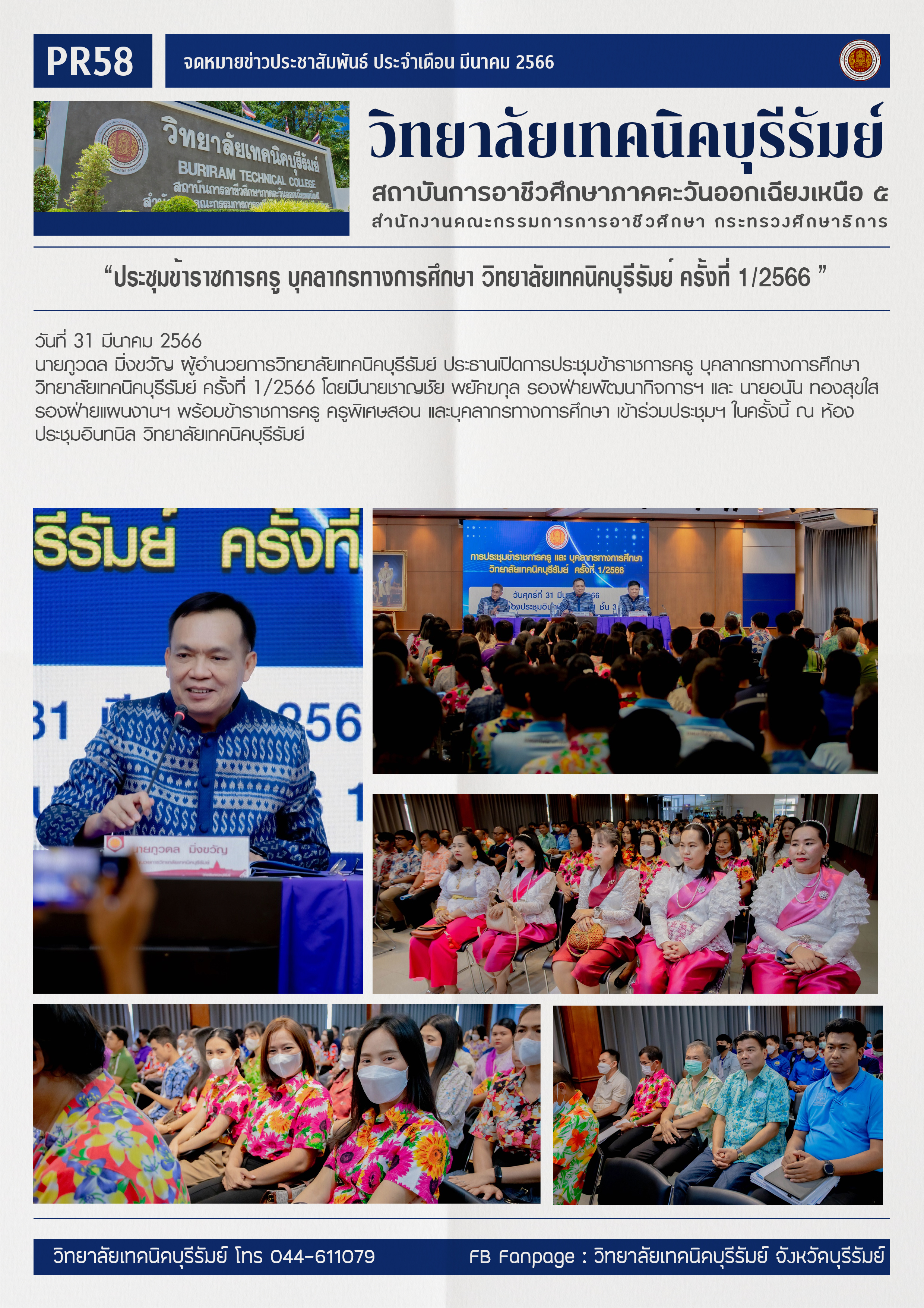 PR58 ประชุมข้าราชการครู บุคลากรทางการศึกษา วิทยาลัยเทคนิคบุรีรัมย์ ครั้งที่ 1/2566 ...
